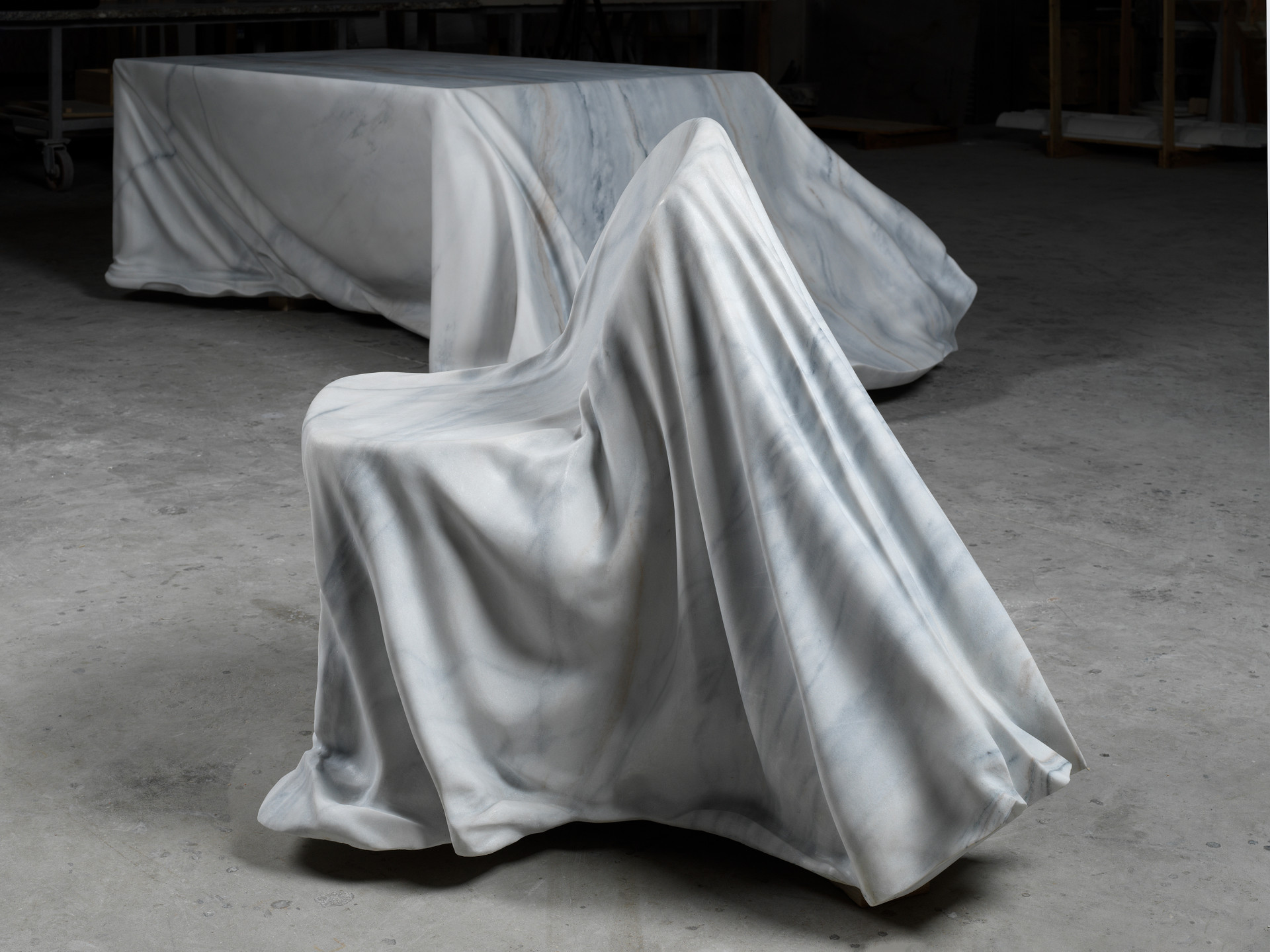 La Sedia di “Velata” è frutto della trasformazione di un singolo blocco di pregiato marmo Bianco Covelano, incarnando un eccellente connubio tra tecnologia e design. Questa straordinaria creazione si presenta come avvolta da un sottile velo di marmo, creando un effetto di forme appena accennate, che stimolano l’immaginazione